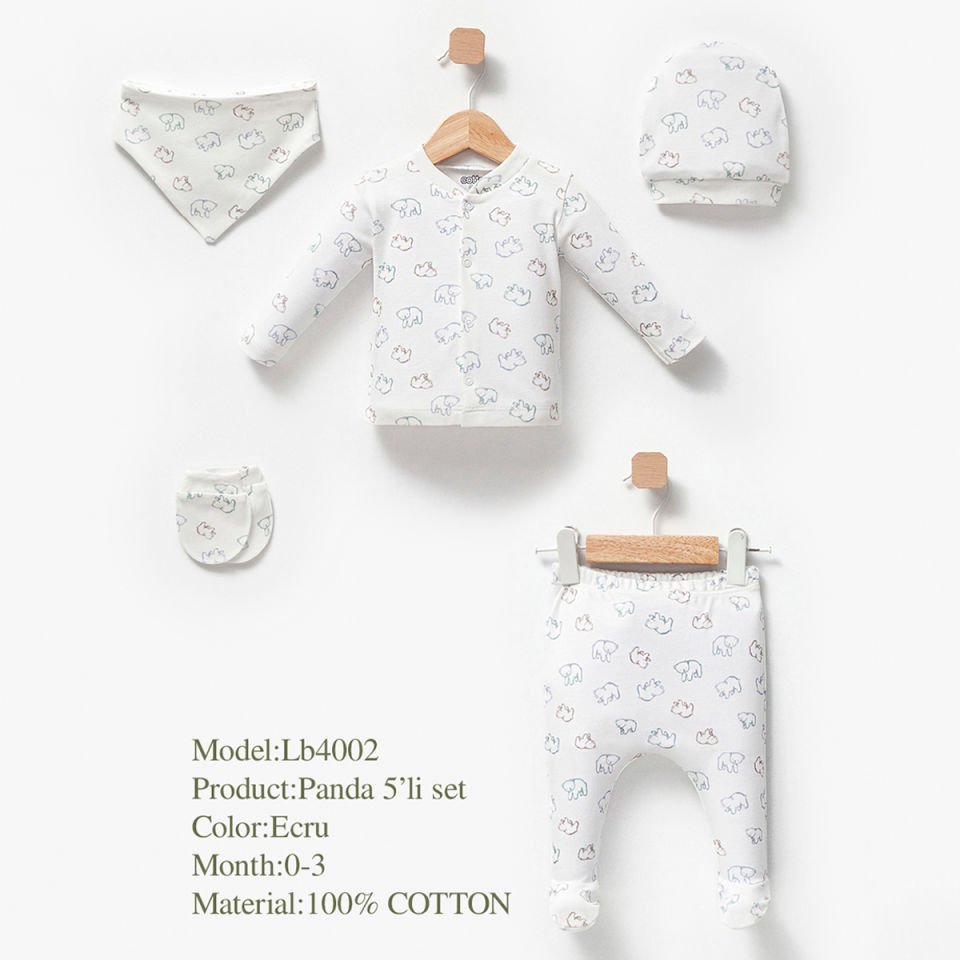 ESYA BABY UNISEX 0-3 AY RENKLİ PANDALI 5Lİ SET